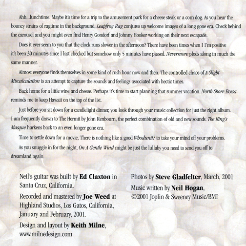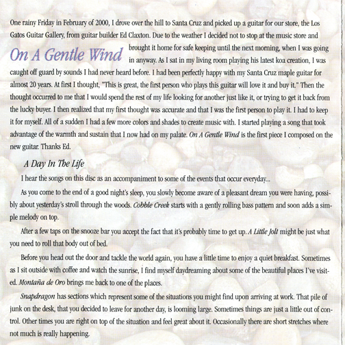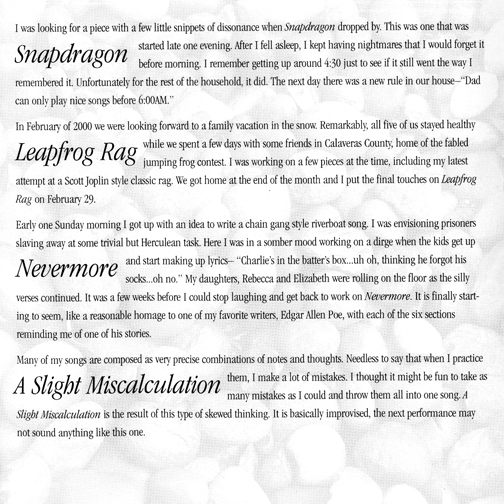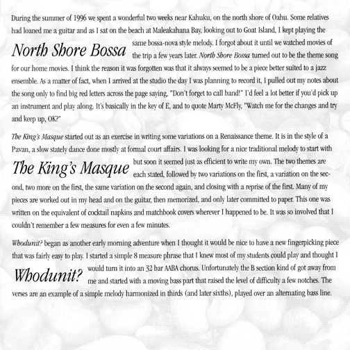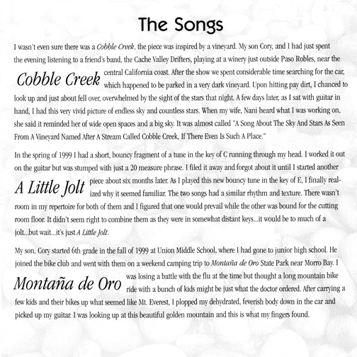 Most of these tunes were written in the spring and summer of 2000.